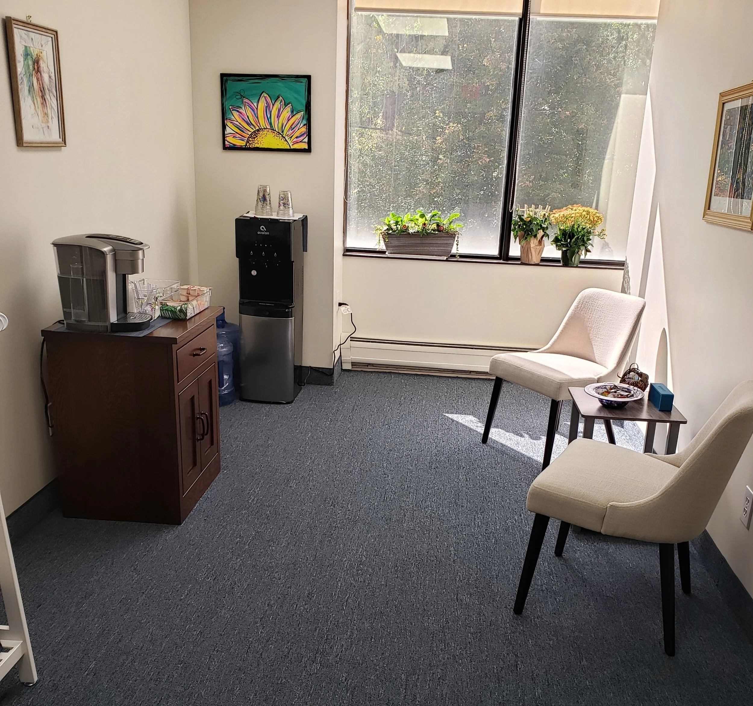 Art corner, your view (with Gia) and the waiting room